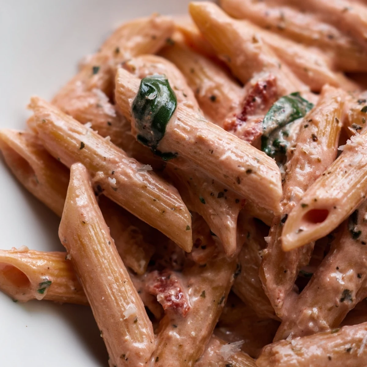 This satisfying one-pan pasta brings together sun-dried tomatoes, fresh spinach, and a luscious cream sauce that perfectly coats every bite. The entire dish comes together in a single skillet—just add uncooked pasta directly to the pan with broth and let it simmer until tender.