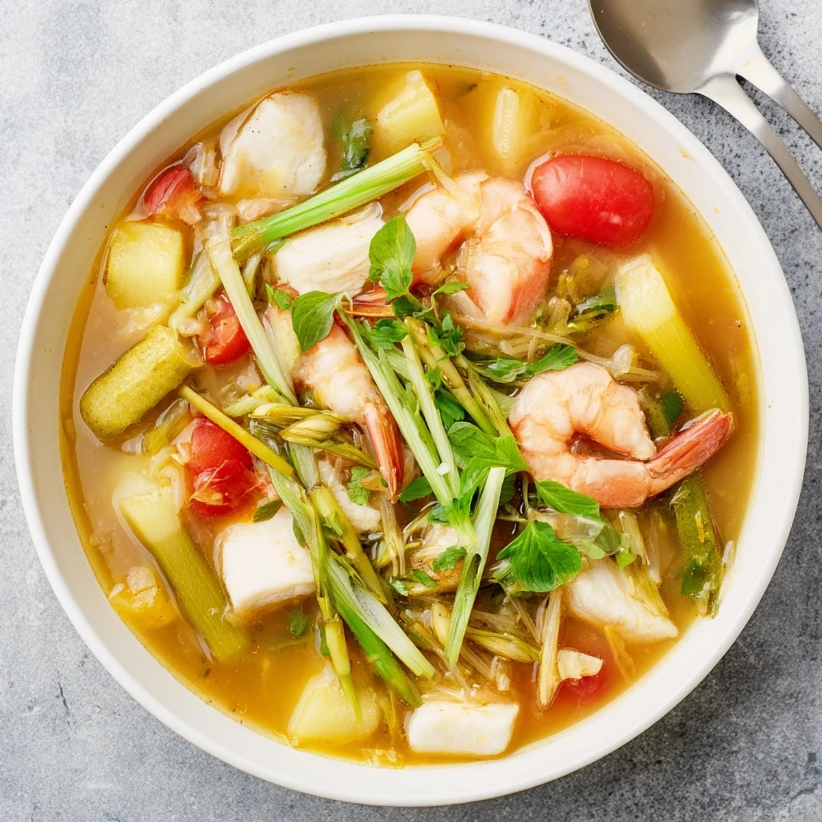 Canh Chua needs steamed jasmine rice to soak up that incredible broth. Spoon the soup over the rice in individual bowls, letting the liquid seep into every grain. The rice tames the acidity just enough while still letting those tangy flavors shine through.